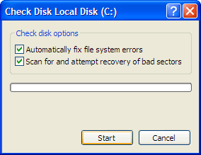 5. Click the Check Now button. 6. In the Check Disk dialog box, select the Scan for and attempt recovery of bad sectors check box, and then click Start.
