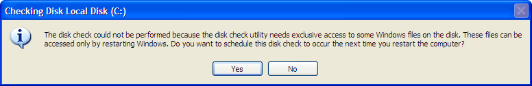 8. Sometimes you can't perform the disk check if the disk is used by the operating system as shown below. Click "Yes" to do the check next time you restart Windows.